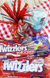 - Snip the ends off of a Twizzlers candy and place in the drink for a straw. For some added fun, you could take some of the red, white, and blue Twizzlers PULL ‘N’ PEEL candy to add a little edible bow or tie to your straw.