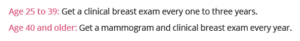 Breast cancer screening exams help find breast cancer at an early stage, when the chances for successfully treating the disease are greatest. The screening recommendations below apply to average-risk women. Women at increased risk may need different test or may need to be tested more often.