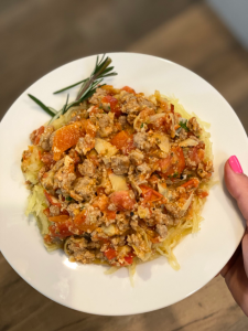 5. Serve over spaghetti squash! (Optional) sprinkle shredded Parmesan over top.